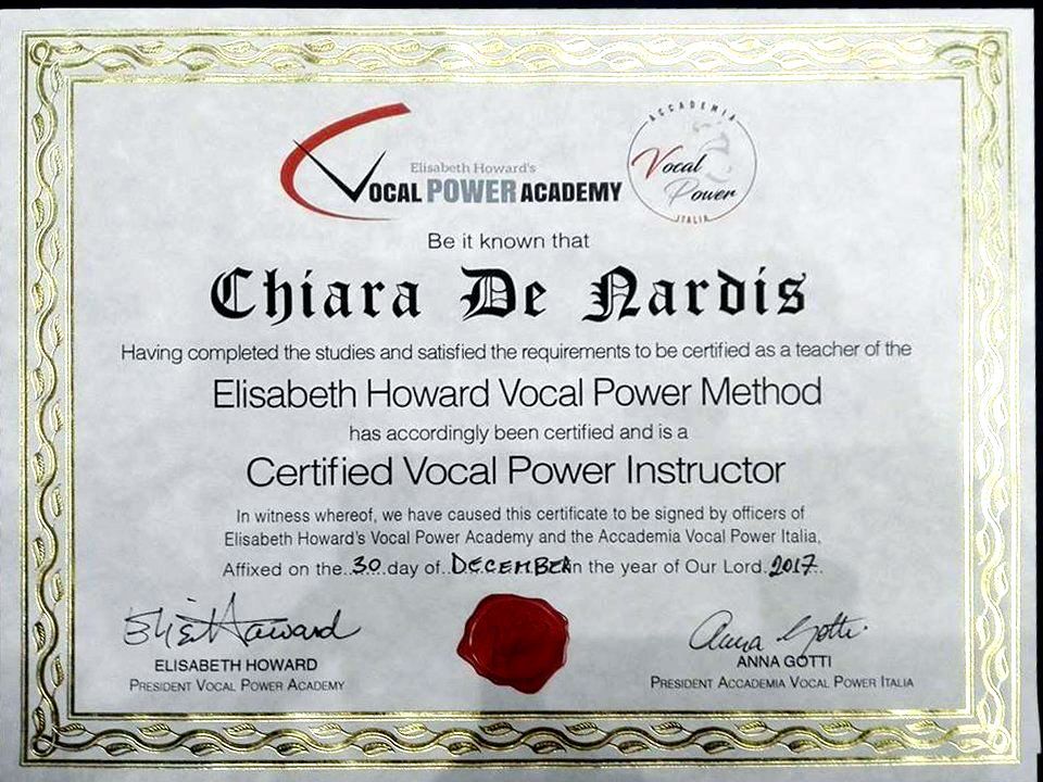 CHIARA DE NARDIS CERTIFIED VOCAL POWER INSTRUCTOR